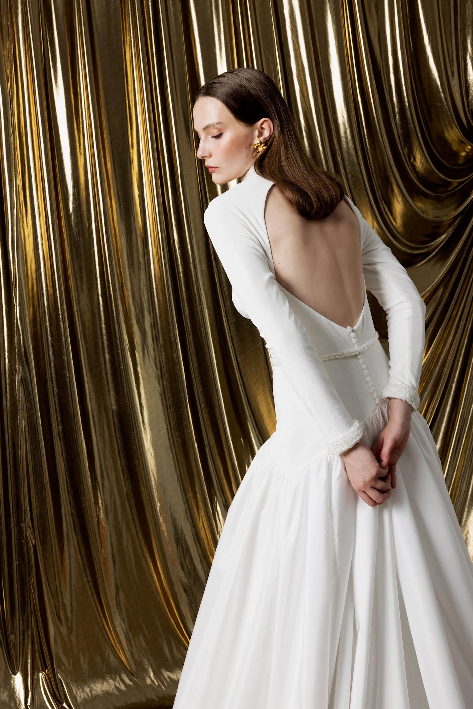 Ece looking gorgeous in her Idylle Gown. Comfortably sexy and stylishly romantic Idylle is designed in duchess satin with puffy off shoulder sleeves and velvet bow details. Ece prefered to use it with a custom made...