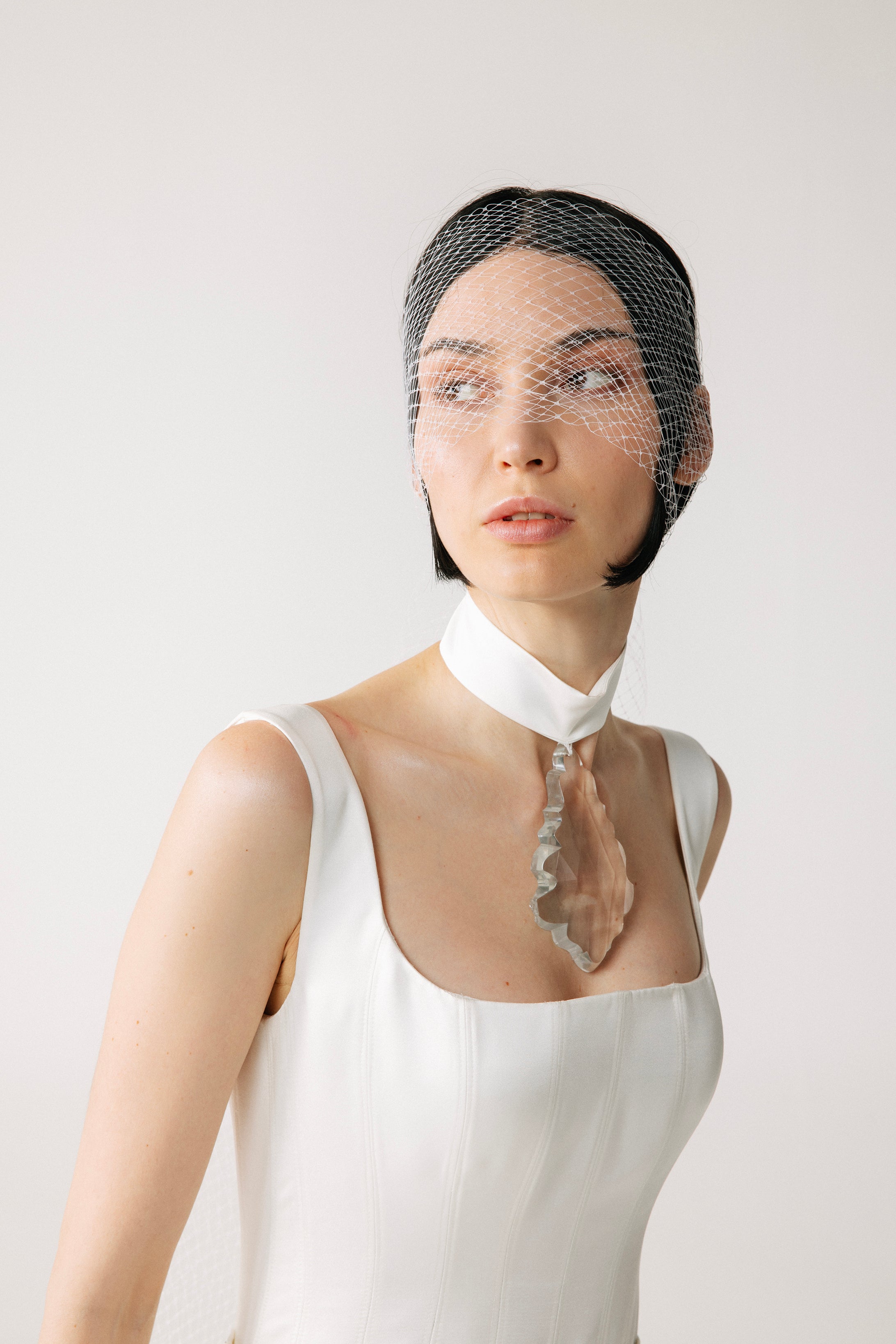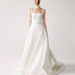 Victorian style bustier square neck silk satin mermaid gown, detachable skirt is sold separately.