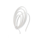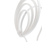 The Syntra Loop is a sculptural headband composed of three structured arcs, creating a minimalist halo with futuristic flair. Ideal for modern brides or fashion-forward muses who seek bold simplicity.