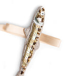 Crafted by hand with gold and silver beads, pearly whites and shimmering textures, this couture napkin ring set is the refined companion to long summer evenings, linen-draped tables, and mezze shared under olive trees.